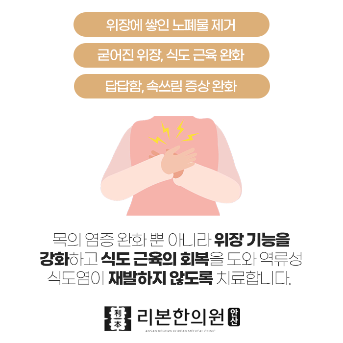소화기 문제나 위장 장애 문제를 호소하는 분들이 많습니다. 그 중 대표적인 증상이 역류성식도염입니다. 이는 위의 내용물이나 위산이 식도로부터 역류하여 식도에 염증이 유발되는 증상입니다. 그러면서 나타나는 다양한 불편감이나 증상으로 바른 관리와 안산 역류성식도염치료 가 필요합니다. 식도염은 음주, 흡연, 비만 등의 악화 요인이 더해진다면 더욱 심해집니다.