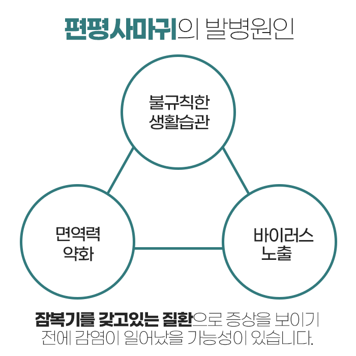 똑같은 사마귀 바이러스에 노출되더라도 면역력이 강한 사람은 회복되며 피부의 안정을 유지하지만 면역력이 낮은 경우 사마귀가 발생하게 됩니다. 즉, 자가면역력을 높이는 것이 사마귀를 치료하는 핵심입니다. 신체 내적으로 바이러스에 대항할 수 있게 면역력을 향상시켜주어 재감염되지 않게 치료해야 합니다. 면역력 안정되지 않으면 더욱 쉽게 재발될 수 있습니다.