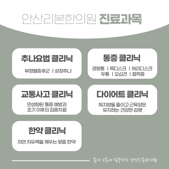 건강하고 지속 가능한 다이어트를 위해서는 전문가의 도움을 받아 자신의 체질에 맞는 방법을 선택하는 것이 중요합니다. 안산다이어트한의원 은 체중 감량을 넘어 체질 개선과 건강 회복까지 함께 고려한 한방 다이어트를 제공합니다. 무조건적인 체중 감량이 아니라, 체지방은 줄이고 근육량을 유지하거나 늘리는 방향으로 접근해야 요요없이 건강하게 살을 뺄 수 있습니다. 정밀하게 진단한 후, 1:1 맞춤 다이어트를 진행합니다. 사람마다 살이 찌는 원인과 감량이 어려운 이유는 다르기 때문에, 비만의 정도뿐 아니라 생활습관, 식습관, 호르몬 밸런스, 유전적 요소 등을 종합적으로 고려해 목표를 설정하고, 체계적으로 진행하는 것이 특징입니다.
