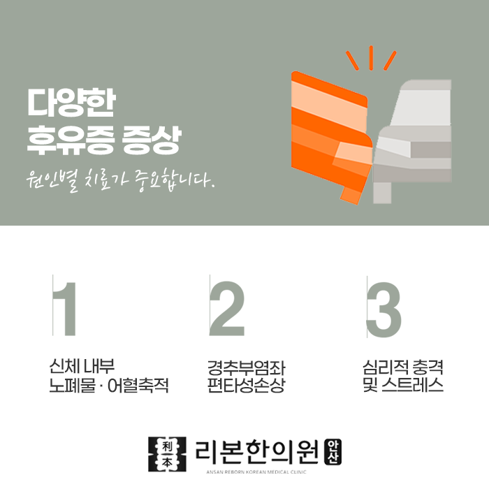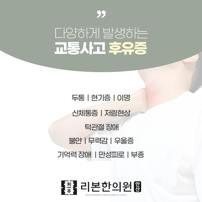 신체 기능의 회복뿐만 아니라, 정서적인 안정과 삶의 질 향상을 위한 첫걸음이 되기 때문입니다. 교통사고를 가볍게 여겨서는 안 됩니다. 겉으로 드러난 상처가 없더라도 내부 손상이나 긴장, 순환 장애가 있을 수 있으며, 이를 방치할 경우 만성적인 고통과 기능 저하로 이어질 수 있습니다. 사고 후에는 가능한 한 빨리 안산교통사고한의원 도움을 받아 정확한 진단과 치료를 받고, 꾸준한 관찰과 관리로 건강을 지켜야 합니다. 조기 치료는 후유증 예방뿐만 아니라 회복 속도를 높이고, 다시 건강한 일상으로 복귀하는 데 결정적인 역할을 하게 됩니다.