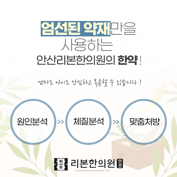 또래보다 키가 작거나 체력이 약해 쉽게 지치는 아이, 감기를 달고 사는 아이, 식욕이 없거나 입맛이 까다로운 아이, 자주 배가 아프거나 대소변에 문제가 있는 아이, 학업 집중력이 부족한 아이 등 성장 한약의 도움이 필요한 아이는 생각보다 많습니다. 안산사동 유아보약 잘 짓는 안산리본한의원에서는 단순히 키를 키우는 데 초점을 맞추기보다, 아이의 전반적인 건강 밸런스를 회복하는 데 중점을 두고 진료하고 있습니다. 무엇보다 아이의 첫 한약은 신중해야 합니다. 자극적인 성분 없이 아이의 체질에 부합하는 맞춤형 처방이 필요합니다.
