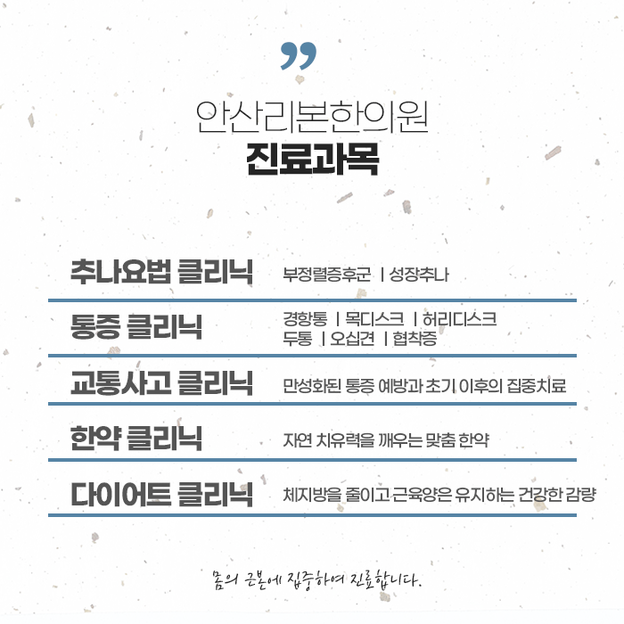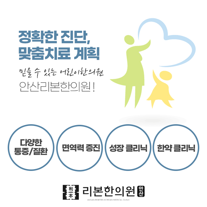 건강한 성장을 위해서는 영양, 수면, 운동이 골고루 조화를 이루어야 합니다. 여기에 한방 치료가 더해지면 성장 속도를 높이는 데 큰 도움이 될 수 있습니다. 특히 체질적으로 허약하거나 성장 발달이 더딘 아이는 성장기에 적절한 한약 복용이 중요한 선택이 될 수 있습니다. 면역력을 높이고 내장 기능을 튼튼히 하여 자생력을 높이는 방식이야말로 근본적인 성장 관리라고 할 수 있습니다. 안산리본한의원은 연중무휴 365일 진료하고 있어 바쁜 부모님들도 편하게 아이와 함께 방문하실 수 있습니다. 아이의 성장과 면역에 대한 고민, 이제 혼자 끌어안지 마시고, 함께 해결해보세요. 건강하게 자라는 아이의 미래를 위한 든든한 한걸음이 되어드리겠습니다.