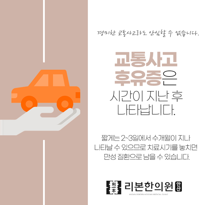 안산사동야간진료한의원 교통사고 치료 미루지말고