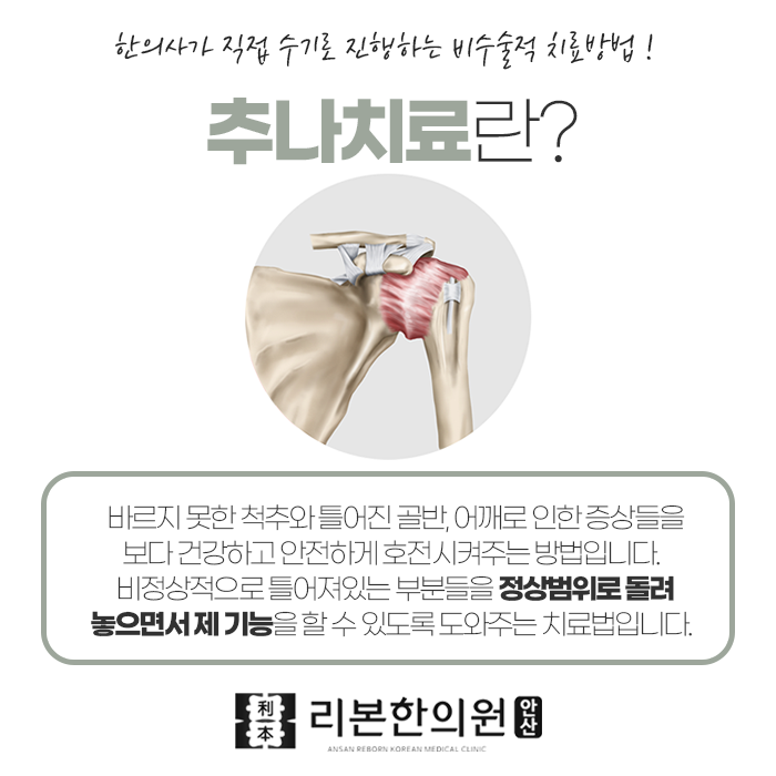 추나치료는 한의사가 직접 손으로 근육과 관절의 위치를 정렬해주는 수기 요법으로, 뭉친 근육을 풀어주고 운동 범위를 넓히는 데 효과적입니다. 특히 움직임이 제한된 어깨 관절에 유연성을 회복시켜주는 데 도움을 줍니다. 여기에 약침 치료를 병행하면 염증을 줄이고 통증을 감소시키는 효과를 얻을 수 있으며, 개인의 체질과 상태에 맞춘 한약 처방을 통해 전반적인 기력 회복과 면역력 증진도 함께 기대할 수 있습니다. 이렇게 여러 방면에서의 치료가 병행될 때 회복 속도는 빨라지고, 재발 가능성도 낮출 수 있습니다.