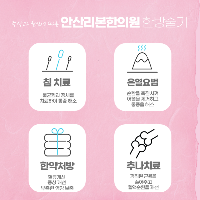 이처럼 다양한 후유증은 단일 원인이 아니라 신체 전반의 불균형과 순환 장애로부터 비롯될 수 있습니다. 안산공휴일한의원 안산리본한의원에서는 사고 후 신체 내부에 생길 수 있는 어혈을 주요 원인으로 보고 있으며, 체내 혈액 순환이 원활하지 않으면 통증이 지속되고 회복이 늦어질 수 있다고 설명합니다. 어혈은 외형적으로 드러나지 않지만 염증을 유발하고 조직 재생을 방해할 수 있어, 이를 해소하는 치료가 반드시 병행되어야 합니다. 환자의 자각 증상뿐 아니라 맥 상태, 체온, 반응 등을 종합적으로 고려해 치료 방향을 결정하는 것이 중요합니다.