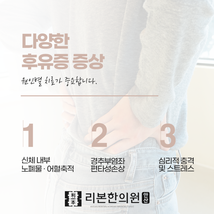 이처럼 다양한 증상에 대응하기 위해 상록구한의원 안산리본한의원에서는 환자의 몸 전체를 하나의 흐름으로 바라보고, 단순히 아픈 부위만이 아닌 전반적인 건강 상태를 함께 살펴보는 치료를 진행하고 있습니다. 특히 교통사고 후 나타나는 대표적인 증상 중 하나인 ‘어혈’은 내부 조직에 남은 손상의 흔적으로, 통증과 염증을 유발하고 회복을 늦출 수 있습니다. 외부에서 쉽게 보이지 않아 자칫 간과하기 쉬우나, 어혈을 제때 해소하지 않으면 만성적인 통증의 원인이 될 수 있습니다.