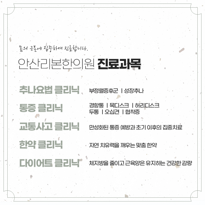 안산 체형교정 몸의 근본에 집중하는 추나치료로