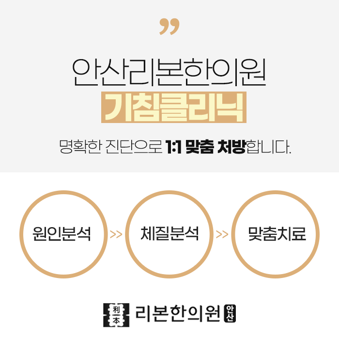 이 밖에도 생활 속에서도 신경쓰고 관리해주어야 합니다. 한방에서는 음식과 환경 또한 치료의 일환으로 중요시합니다. 차가운 음식, 기름진 음식, 자극적인 음식은 피하고, 따뜻하고 수분이 풍부한 식품을 섭취하는 것이 좋습니다. 생강차, 도라지차, 배숙 등은 기침 완화에 도움을 줄 수 있습니다. 만성 기침은 단순한 증상이 아닌 심각한 기저 질환의 신호일 수 있으며, 그 원인도 매우 다양합니다. 안성 만성기침 치료 안산리본한의원은 환자의 체질과 전신 상태를 고려한 맞춤형 치료를 통해 기침의 근본 원인을 다스리는 데 중점을 두며, 편안한 일상을 찾으시도록 정성을 다해 도와드립니다.