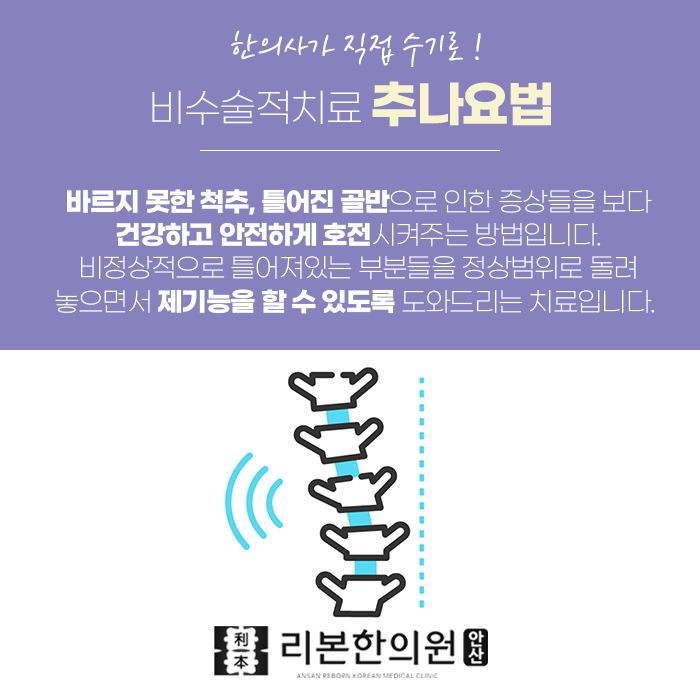 또한 맞춤형 한약을 처방하여 허리 통증의 원인은 체질과 신체 상태에 따라 다를 수 있으므로, 개인의 증상에 맞는 약재를 활용하여 부족한 부분을 보완하고 내부 기능을 회복하는 방향으로 진행됩니다. 추나요법은 근육과 관절을 부드럽게 움직이며, 틀어진 골반과 척추를 바르게 잡아주는 수기 요법입니다. 물리적인 자극을 통해 신체의 비대칭을 완화하고, 허리에 가해지는 부담을 줄여줍니다. 시술자의 숙련도에 따라 효과에 차이가 있으므로, 충분한 상담과 확인이 중요합니다.