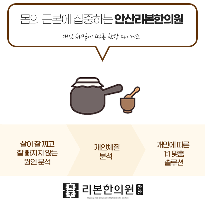다이어트는 단순한 체중 감량을 넘어서, 몸의 균형을 되찾고 정상적인 기능을 회복하는 과정입니다. 사람마다 신체 상태와 생활 습관이 다르기 때문에 모두에게 똑같은 방법이 맞을 수 없습니다. 안산한방다이어트한의원 에서는 한약, 약침, 전침과 더불어 생활습관 개선을 함께 병행하는 맞춤형 1:1 다이어트 프로그램을 운영하며, 무리 없는 감량을 지원합니다. 건강한 다이어트는 장기적으로 삶의 질을 높이고 활기찬 일상을 만드는 토대가 됩니다. 안산리본한의원과 함께라면 몸의 근본을 돌보며 건강하게 체중을 조절할 수 있을 것입니다.