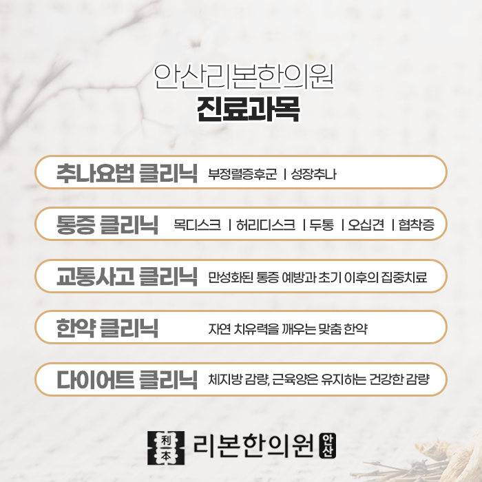 추나 치료는 숙련된 한의사가 손으로 척추와 관절을 조정하여 불균형을 교정하고 통증을 완화시키는 방법으로, 비틀어진 골반이나 잘못된 척추 정렬을 바로잡는 데 중요한 역할을 합니다. 상록구 허리디스크 치료 도와드리고 있는 안산리본한의원은 단순히 통증 완화에 그치지 않고, 통증의 근본 원인을 찾고 신체 기능을 회복하도록 돕는 치료를 제공합니다. 허리디스크 외에도 근육통, 염좌, 인대 손상 등 다양한 문제를 동시에 다루며, 통증이 재발하지 않도록 생활 습관 개선과 자세 교정도 함께 지도합니다. 무엇보다 꾸준한 관리와 올바른 생활 습관이 중요하며, 치료 중에도 무거운 물건을 들지 않도록 주의하고, 앉거나 설 때 허리에 무리가 가지 않도록 바른 자세를 유지하는 것이 필요합니다.