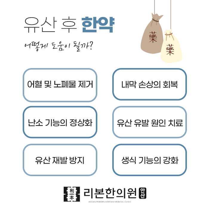 유산 후에는 심신의 회복을 돕는 것이 매우 중요합니다. 임신과 유산의 과정에서 자궁이 손상되거나 어혈이 정체되면서 순환력이 떨어지게 됩니다. 자궁 기능이 저하되면 복통, 생리불순, 어혈 등의 후유증을 경험할 수 있습니다. 제대로 관리하지 않으면 습관성 유산으로 이어질 수 있어 주의가 필요합니다. 또한, 향후 임신 가능성에도 영향을 미치고, 출산 후 관절통, 시큰거림 등의 증상도 발생할 수 있습니다. 특히 계류유산 후 소파수술을 받았을 경우, 산후 증후군이나 후유증이 더 자주 발생할 수 있습니다. 따라서 유산 후 적절한 관리와 치료로 건강을 회복하는 것이 필수적입니다.
