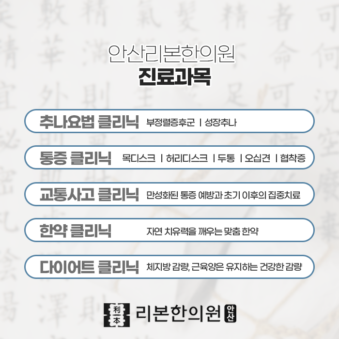 안산사동 계류유산치료 회복과 관리에 힘써야