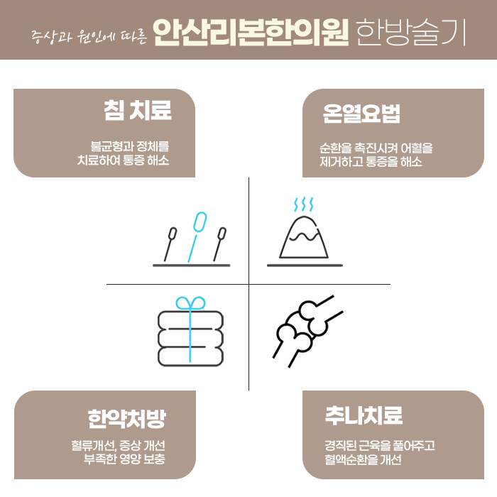 한약 치료도 병행되며, 관절 내 염증을 억제하고 연골이나 인대 조직의 회복을 돕는 성분으로 구성되어 있습니다. 특히 무릎에 자주 열감이나 부종이 나타나는 경우, 한약은 전신의 순환을 개선하고 체내 밸런스를 회복하는 데 효과적입니다. 무릎 통증은 단순히 나이 탓으로 넘기기보다 정확한 원인을 파악하고 체계적인 치료를 통해 충분히 개선이 가능합니다. 안산리본한의원과 함께 무릎 건강을 되찾아보시길 바랍니다.