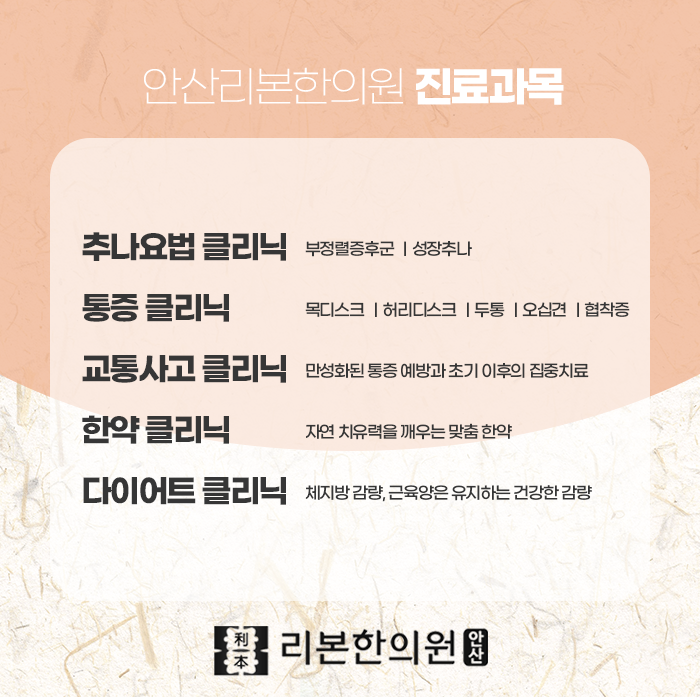 무엇보다 중요한 것은 장 건강을 단순히 ‘증상 조절’의 관점에서 보지 않고, 몸 전체의 균형을 회복하는 관점에서 접근하는 것입니다. 대장과 위장의 기능은 서로 깊이 연결되어 있으며, 감정 상태나 면역력, 호르몬 변화 등 다양한 요소와도 상호작용합니다. 따라서 증상만 억누르는 치료보다는, 그 원인을 찾아 체계적으로 바로잡아야 오래도록 편안한 장 건강을 유지할 수 있습니다. 안산리본한의원에서는 이러한 복합적인 문제를 통합적으로 바라보며, 소화기와 면역 기능 회복은 물론 전반적인 건강 증진까지 함께 이루어질 수 있도록 돕고 있습니다.