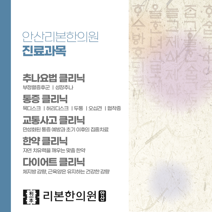 이는 단순히 살을 빼는 차원을 넘어, 몸의 에너지 흐름을 바로잡고 전신 컨디션을 높이는 통합적인 건강 관리입니다. 다이어트는 자신을 억누르는 과정이 아니라, 자신의 몸을 이해하고 회복하는 여정입니다. 체중계의 숫자에 일희일비하기보다, 내 몸이 얼마나 가볍고 편안해졌는가, 하루를 얼마나 활력 있게 보낼 수 있는가가 진정한 변화의 척도입니다. 안산리본한의원은 개인의 체질과 생활 리듬에 맞춘 한방 다이어트를 통해, 무리하지 않고 자연스럽게 유지되는 건강한 변화를 추구합니다.