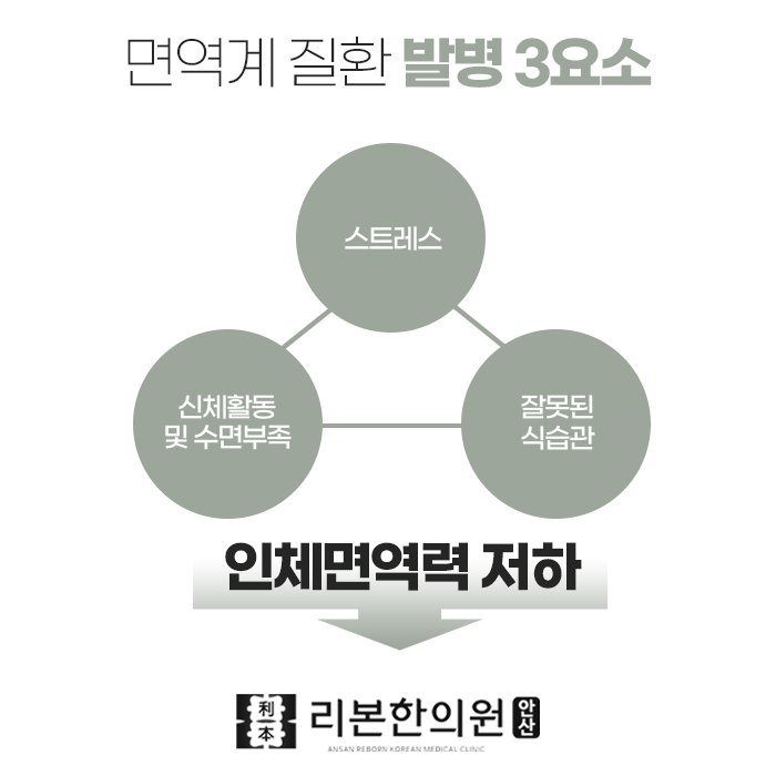최근에는 미세먼지·황사·꽃가루 농도 증가 등 외부 환경이 악화되면서 알레르기 인구가 더욱 늘고 있습니다. 하지만 이러한 자극이 문제가 되기 이전에, 몸이 외부 변화에 적절히 대응하지 못할 만큼 면역 기능이 약해졌다는 점을 인지하는 것이 중요합니다. 건강한 면역 체계는 외부 자극에도 안정적으로 반응하지만, 면역력이 떨어지면 작은 먼지나 온도 변화에도 민감하게 반응해 과도한 면역 반응을 일으키게 됩니다. 이 외에도 여러 가지 원인으로 인해서 남녀노소 면역력이 저하될 수 있고 그만큼 여러 문제를 일으킬 수 있습니다. 결국 문제 해결의 핵심은 ‘무너진 면역의 균형을 회복하는 것’입니다.