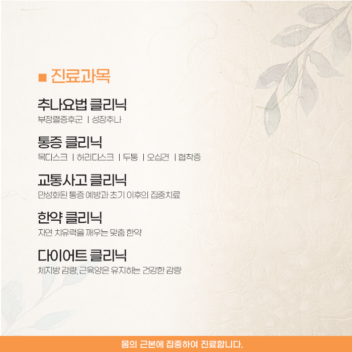 또한 안산한방다이어트한의원 은 체중 변화가 주는 심리적 압박감까지 함께 살핍니다. 체중에 대한 스트레스는 호르몬 균형을 흐트러뜨려 감량을 방해할 수 있기 때문에, 정기 상담을 통해 식습관 변화는 물론 기분 상태, 수면 질, 에너지 흐름 등을 지속적으로 관리합니다. “덜 먹기”에 집중하기보다 몸의 리듬을 올바르게 되찾도록 도와, 감량 과정이 고통이 아니라 회복의 과정이 되도록 돕는 것입니다. 한의학에서는 체온과 순환의 회복을 건강의 기본으로 봅니다. 냉증과 혈류 정체는 피로·부종·체중 증가의 원인이 되기 때문에, 약침·부항·뜸·전기자극 등 다양한 한방요법을 활용해 체온을 높이고 순환을 원활하게 만들어 줍니다.