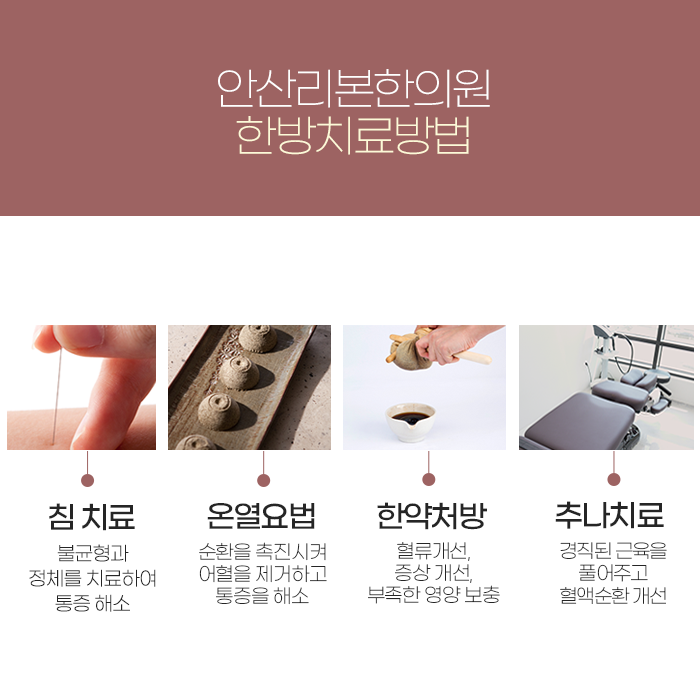이러할 때 다양하게 적용되는 한방 치료를 통해서 회복에 도움을 받을 수 있습니다. 침 치료는 굳어 있는 근육과 정체된 기혈을 풀어주어 통증을 완화하고, 부항은 막힌 혈류를 배출해 무겁던 부위를 가볍게 만들어 줍니다. 약침은 손상된 조직에 직접 작용해 회복 속도를 높이며, 추나 치료는 충격으로 틀어진 관절과 척추를 다시 자리 잡게 하여 자세 균형을 안정적으로 회복하는 데 효과적입니다. 한약은 환자의 체질과 사고 후 반응을 종합해 처방되며, 기력을 보강하고 순환을 개선해 전반적인 회복을 돕습니다. 또한 사고 이후 흔히 나타나는 불안, 가슴 답답함, 수면 장애 등 심리적 불안정도 함께 다룰 수 있어 신체와 정서 회복을 동시에 관리할 수 있습니다.